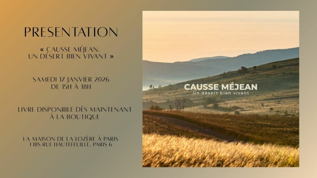 Plus qu’une lecture, c’est une évasion à travers ce territoire lozérien qui vous attend. C’est ainsi que l’Association Le Méjean présente cet ouvrage réalisé par ceux qui connaissent le mieux et habitent le Causse Méjean. Seront présents : Evelyne Perrichon, vice-Présidente de l’Association du Méjean ; Sarah Dejean, agricultrice sur le Causse ; Alain Joie, membre du Conseil d’Administration de l’Association, et Marie Descourtieux, membre du Conseil d’Administration et porteuse de ce projet de présentation à la Maison de la Lozère.